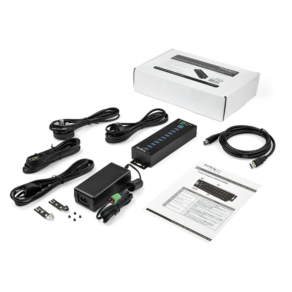 Startech.com concentrador industrial usb 3.0 de 10 puertos - 5gbps - adaptador de alimentación - protección de descargas 350w & esd - soporte uasp - 10 total usb port(s) - 10 puerto(s) usb 3.1 - pc