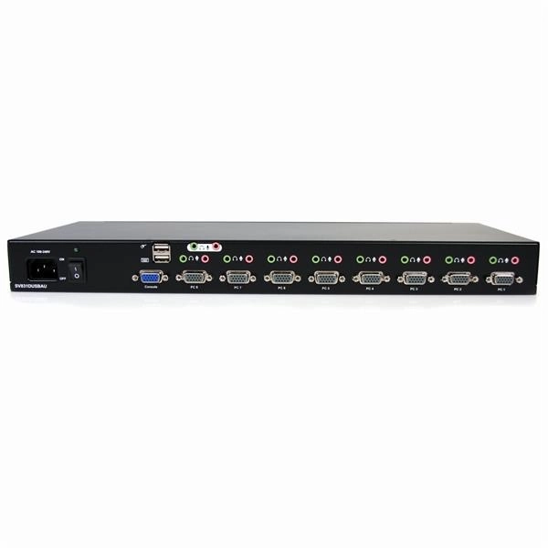Startech.com conmutador switch kvm 8 puertos de video vga hd15 usb 2.0 usb a y audio - 1u rack estante - 8 computador(es) - 1920 x 1440 - 2 x usb - 9 x vga - 1u - montable en bastidor, de escritorio