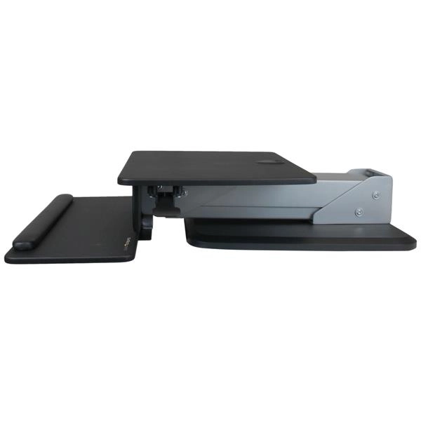 Startech.com estación de trabajo de pie y sentado con ajuste de altura con un solo toque - 30.5cm (12") a 76.2cm (30") para pantalla plana - 13kg capacidad de carga - panel plano tipo de pantalla compatible - 16cm altura x 71.9cm ancho - de escritorio, sobremesa - acero, madera - negro, plata