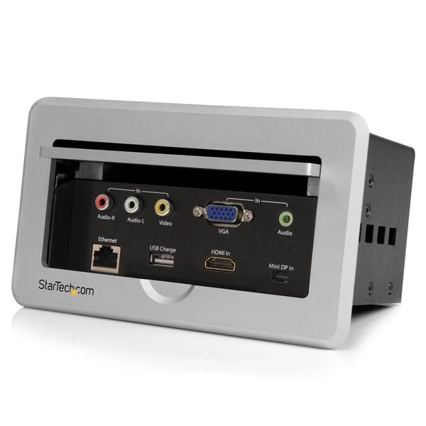 Startech.com gabinete de conectividad para mesa de juntas - módulo de conexiones hdmi vga y mini displayport - 120 v ac 2a, 230 v ac montaje en superficie