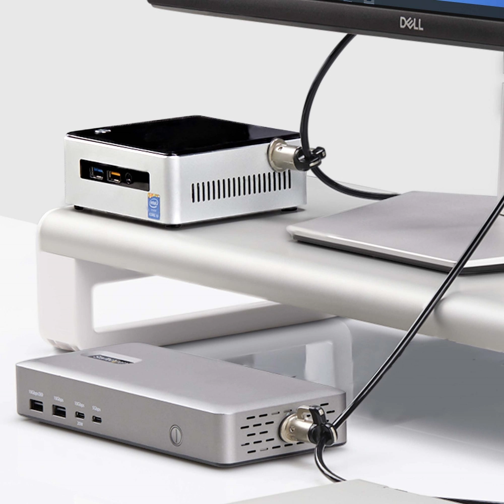Startech.com juego de candado para computadora y periféricos - cable de 3m de acero - candado antirrobo - k-slot - para 3 dispositivos - 2.99m cable - reiniciable - 4-dígitos - cerradura de combinación - plata, negro - plástico, acero, aleación de cinc - para portátil, computadora de escritorio, workstation, disco duro, tableta, base de conexión, monitor, impresora, proyector, osciloscopio, material de laboratorio, ...