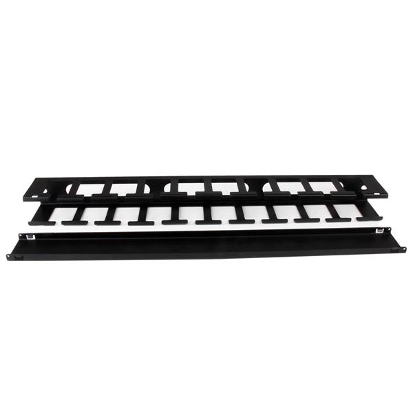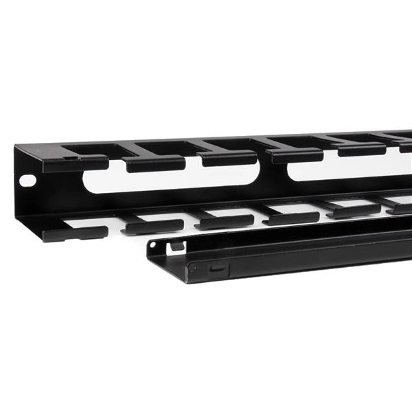 Startech.com panel canaleta horizontal de 1u con cubierta para gestión de cableado en racks y perforaciones laterales - panel del administración de cables - 1u altura del rack x 19" anchura de panel - acero