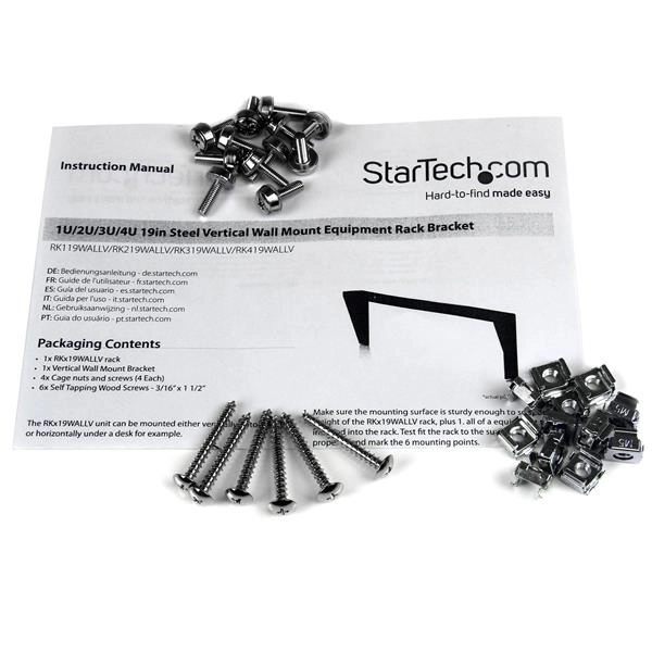 Startech.com rack vertical fijo mural 3u de 19 pulgadas para servidores - bracket de pared para panel de parcheo - carga de 68kg - 56.70kg capacidad de carga - 1