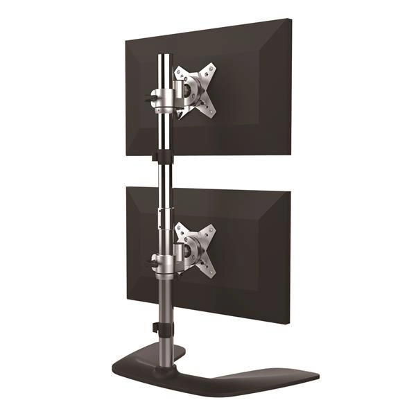 Startech.com soporte vesa para 2 monitores de hasta 27" - base para monitor ergonómica de sobremesa - para 2 monitores apilados - plata - hasta 68.6cm (27") para pantalla plana - 16kg capacidad de carga - 94cm altura x 11.4cm ancho - de escritorio, sobremesa - aluminio, plástico - negro, plata