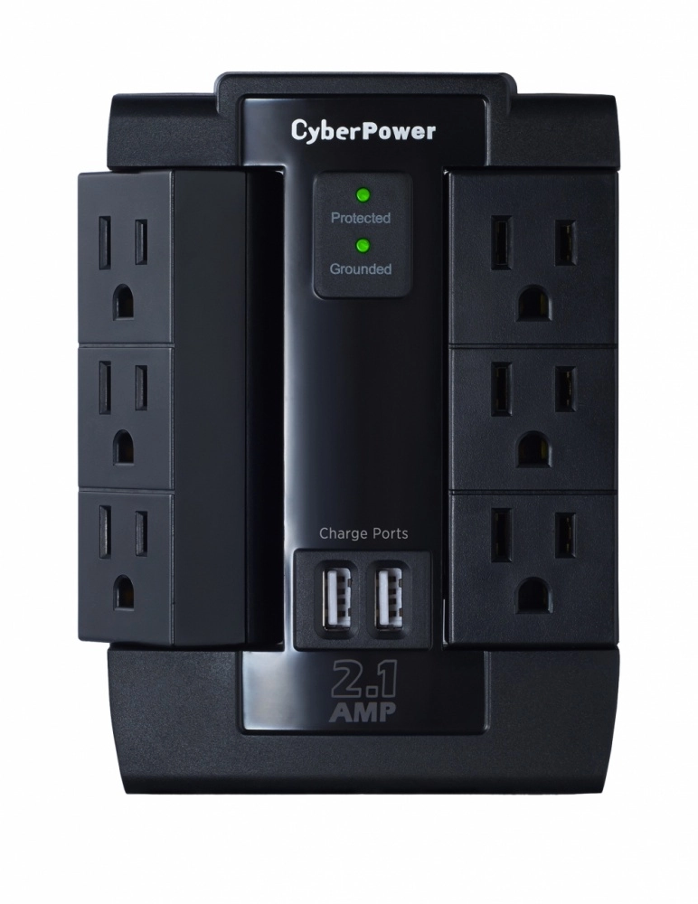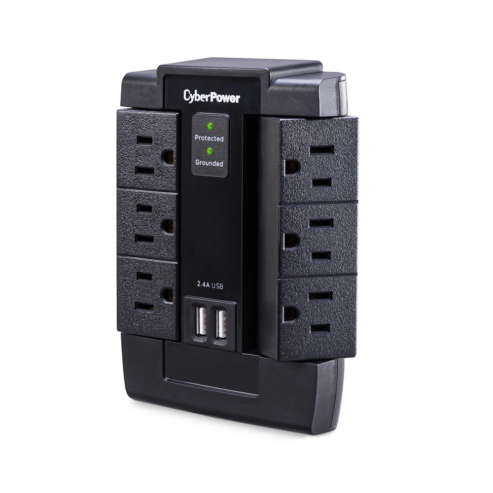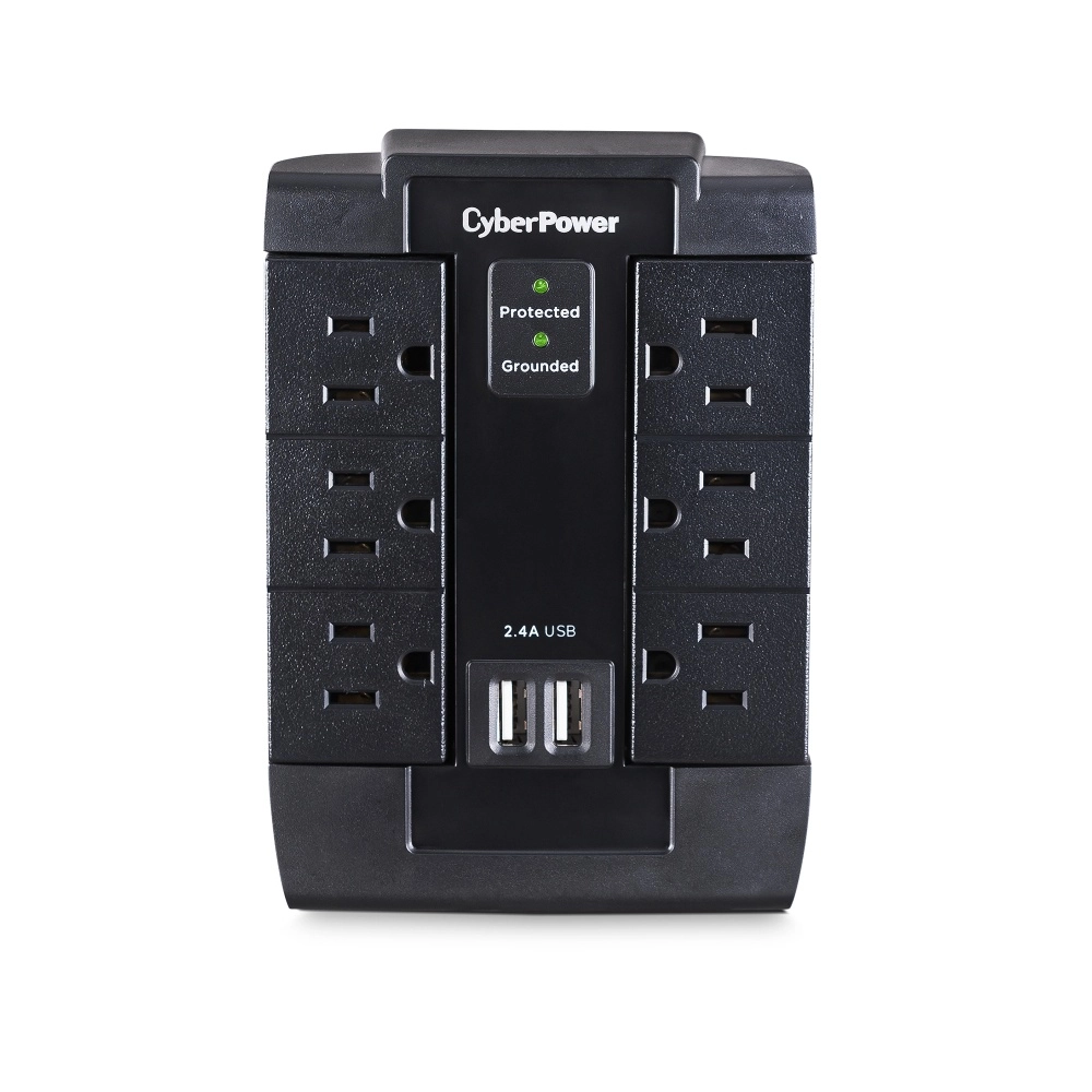 Supresor de picos usb cyberpower p600wsurc1, voltaje 125 v, 1500 j, 6 salidas ac, 60hz, color negro