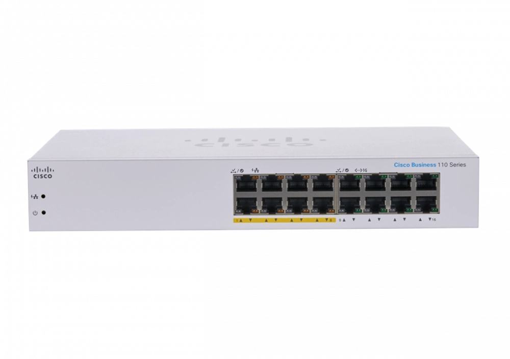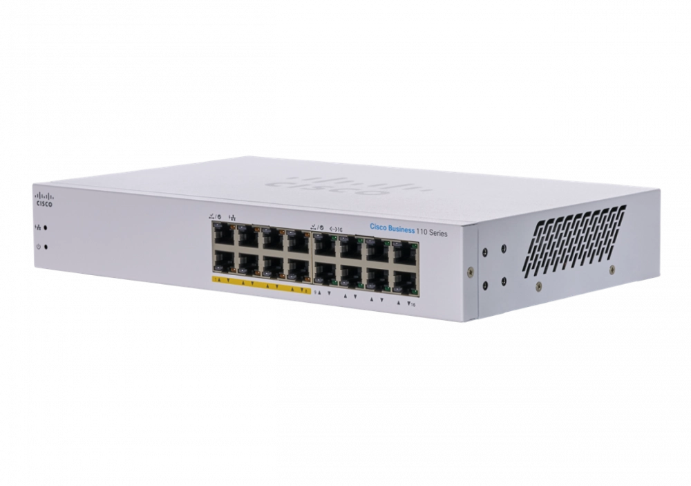 Switch cbs110-16pp-na cisco - no administrable 16 puertos 10/100/1000 (de los cuales 8 soportan poe con 64w)