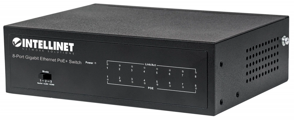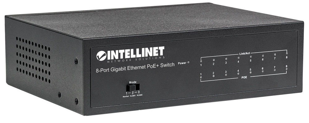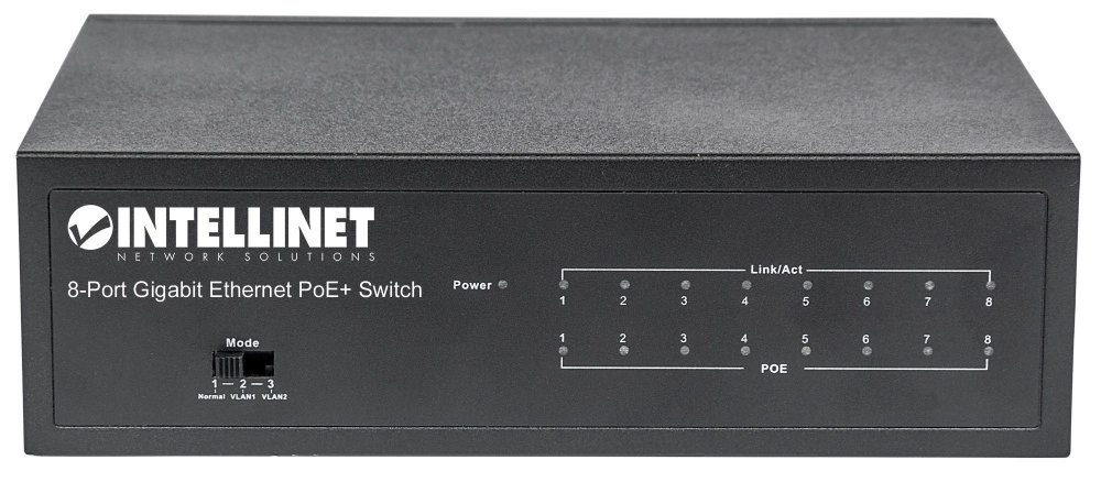 Switch intellinet poe+ gigabit ethernet de 8 puertos - negro, 67, 3 w, 8 puertos, cat5e, cat6, rj-45
