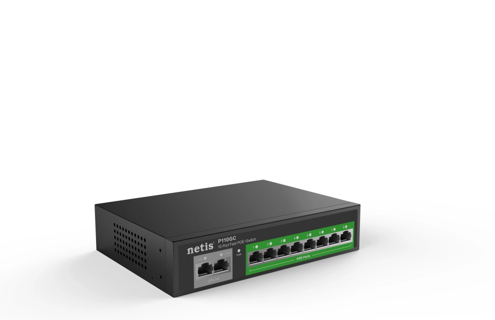 Switch netis modelo p110gc 8* puertos ge poe+ switch - ieee 802. 3af/at, poe budge 120w, 2*ge uplink port
