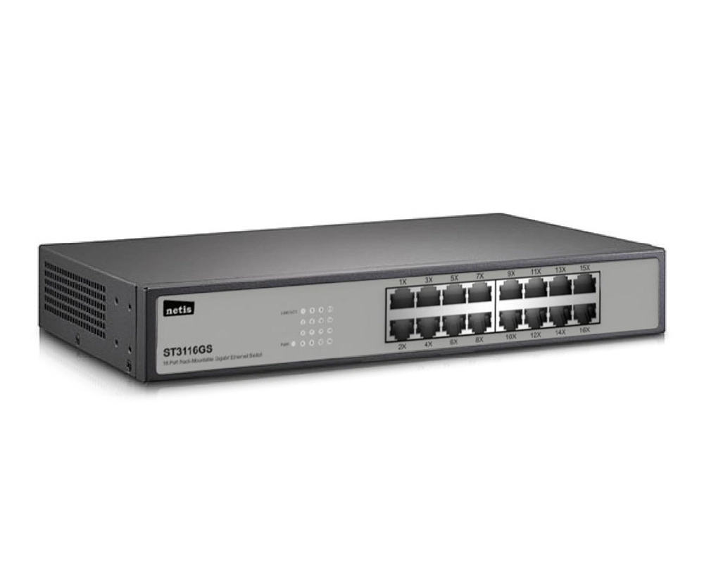 Switch netis modelo st3116gs 16 port unmanaged gigabit desktop switch - , free rack mountable bracket