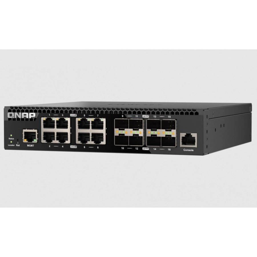 Switch qnap qsw-m3216r-8s8t-us, 16 puertos / 8 10gbesfp+ / 8 10gbe base-t(rj45) / 1 puerto de gestion gbe rj45 /administracion web capa 2