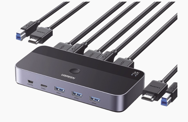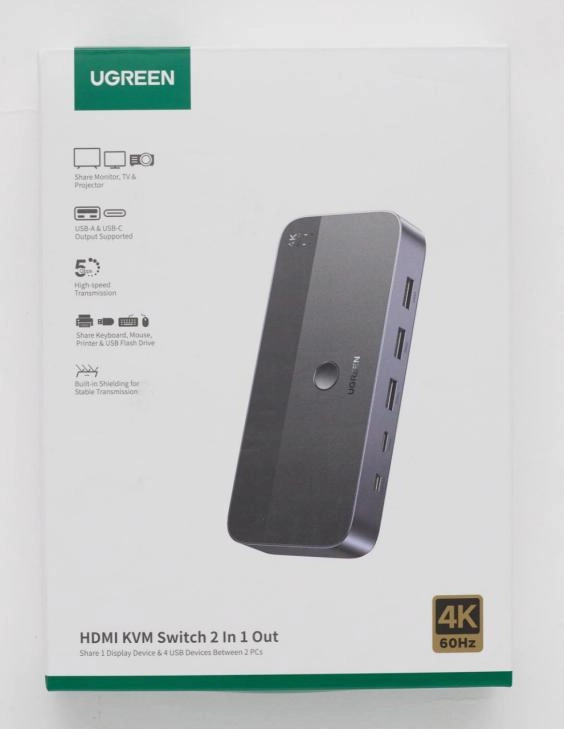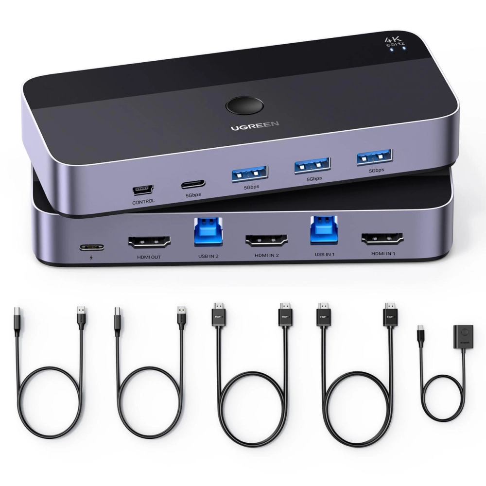 Switch ugreen , 3840x2160 pixeles, 4k ultra hd, hasta 2 dispositivos, negro, gris