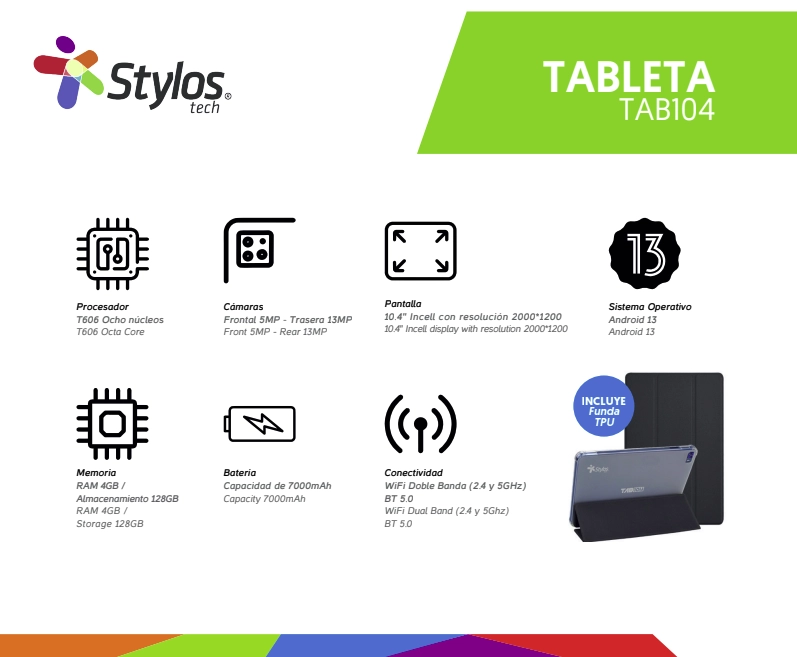 Tableta 10.4 pulgadas 4+128gb azul con funda stylos. stta1041a