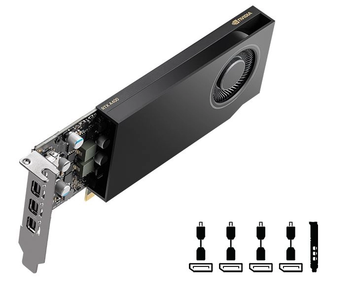Tarjeta de video pny nvidia quadro a400/pcie x16 3.0/4 gb/gddr6/3x minidp 1.4/bajo perfil/gama media/diseño