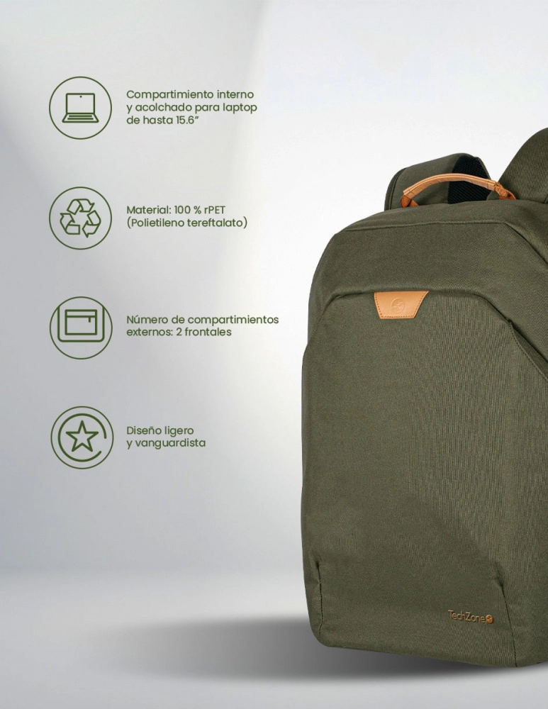 Techzone tzlbp56w-v mochila city backpack verde tereftalato de polietileno reciclado (rpet)
