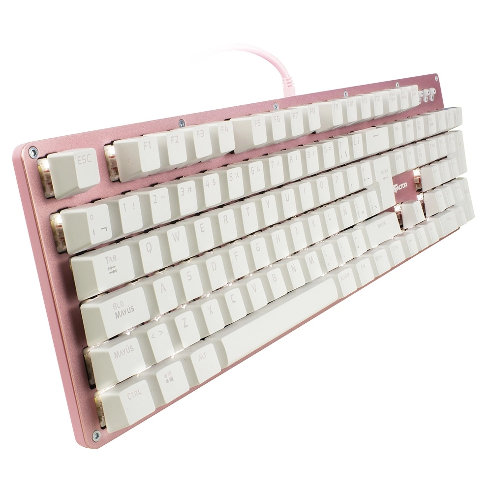 Teclado mecánico game factor kbg400-pk-rd - switch red, usb, rosa y rojo