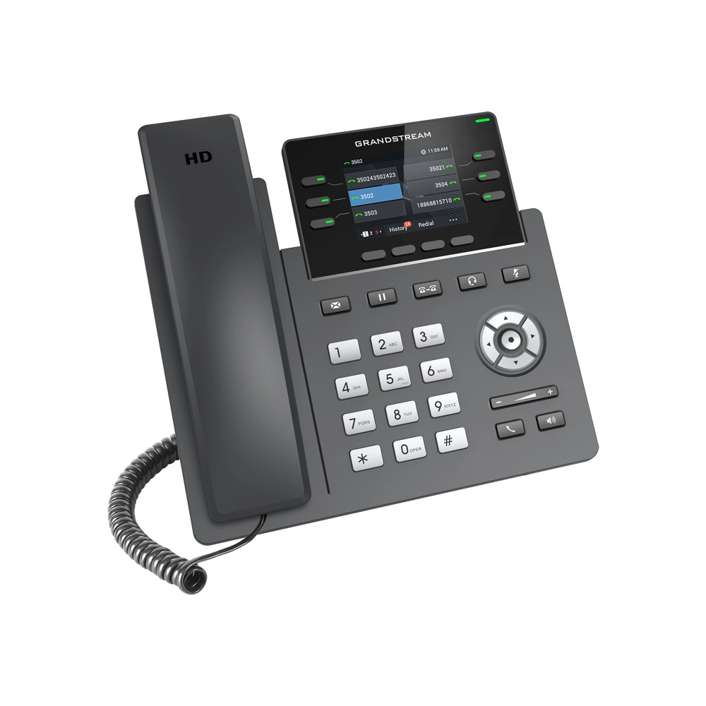 Telfono ip grandstream grp2613/ 3 cuentas sip 6 lineas p. a color 2 puertos 10/100/1000 soporta (ehs) 24 teclas blf soporta poe e incluye eliminador