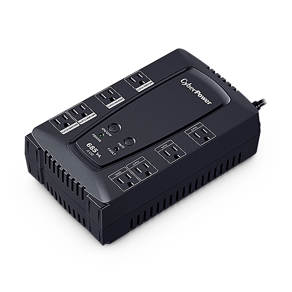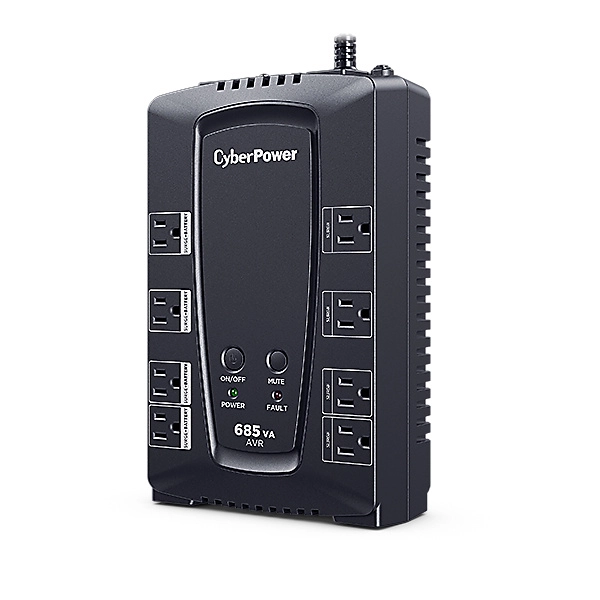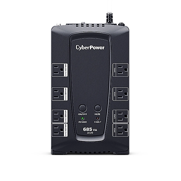Ups de línea interactiva cyberpower cp685avra - 685va390w - montaje en pared - avr - 8hora(s) recharge - 2minuto(s) stand-by - 120 v ac entrada - 120 v ac salida - 8 x nema 5-15r receptacle(s) - monofásico - señal senosoidal simulada - usb - 4 x batterysurge outlet
