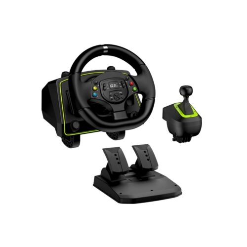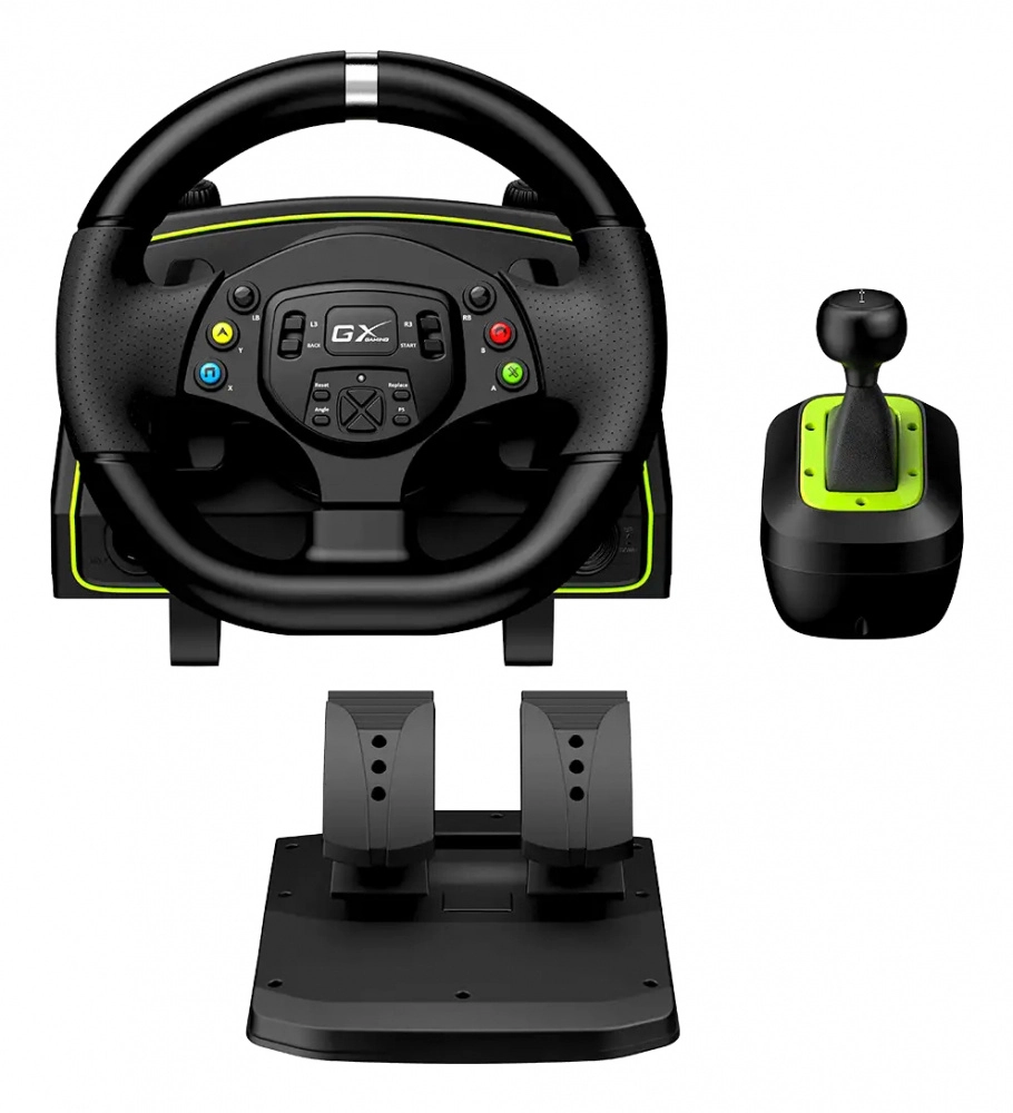 Volante con pedales y palanca de velocidades, genius speedmaster x2, vibracion, usb, color negro