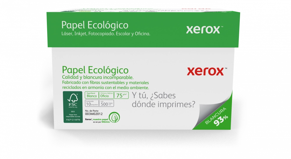 Xerox papel ecologico oficio 93 blancura